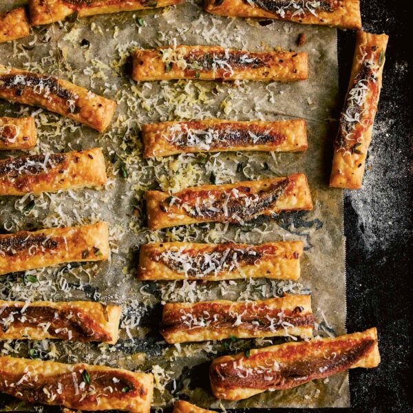 The anchovies are wearing the trousers in these buttery puff pastry straws. Their salty notes marry perfectly with the heat from the chilli and fragrant thyme leaves. Perfect with a pre-dinner drink or on a picnic.